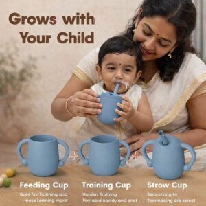 SPY KIDSĀ® Silicone Baby Sippy Cup ā Soft Straw, Spill-Proof, BPA-Free (With Cleaning Brush) quantity